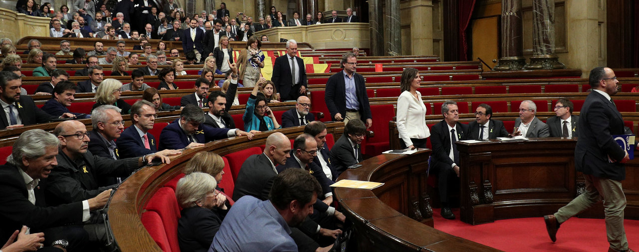 La résolution a été adoptée en l'absence de l'opposition, qui avait quitté l'hémicycle, par 70 voix pour, dix voix contre et deux abstentions. Les partis séparatistes, allant de l'extrême gauche au centre droit , sont majoritaires en sièges (72 sur 135) au parlement. Les élus ont ensuite entonné l'hymne nationaliste et crié «Vive la Catalogne!».