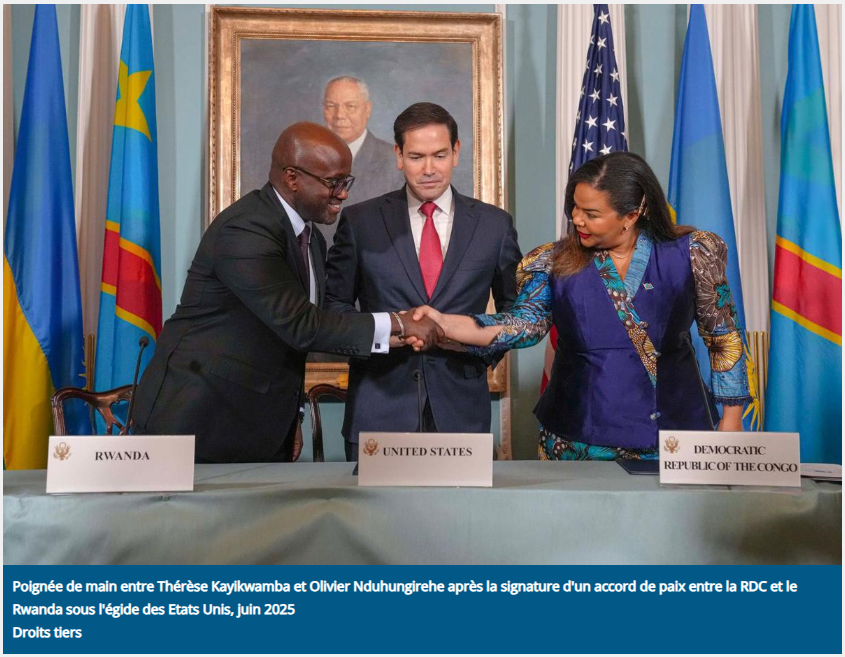 Selon un rapport récent relayé par Radio Okapi (daté du 4 mars 2026), le taux global d’exécution de l’Accord de Washington entre la République Démocratique du Congo (RDC) et le Rwanda reste bloqué autour de 23 %, huit mois après sa signature officielle le 4 décembre 2025 (ou décembre 2025 pour la version finale présidée par Donald Trump, après un accord de paix initial signé le 27 juin 2025).Cet accord, négocié sous l’égide des États-Unis et visant à mettre fin aux hostilités dans l’est de la RDC, à assurer le retrait des troupes rwandaises présumées, à stopper le soutien au M23/AFC et à promouvoir une intégration économique régionale (notamment via le Cadre d’intégration économique régionale – REIF), peine à se concrétiser sur le terrain.D’après les évaluations antérieures (Baromètre des accords de paix en Afrique, consulté par Actualite.cd en février 2026 et Ouragan.cd en décembre 2025) :