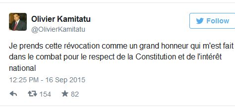 L'intéressé a réagi à sa révocation sur compte Twitter: