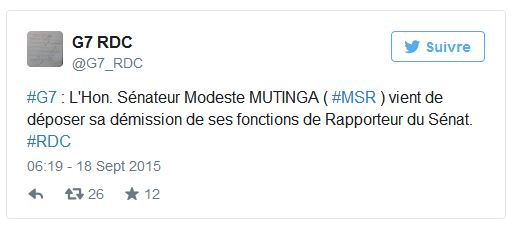 Le rapporteur du Sénat Modeste Mutinga a démissionné vendredi 18 septembre de son poste. Il est membre du MSR, l’un des partis signataires de la lettre ouverte adressée au chef de l’Etat, l’invitant à respecter la constitution pour l’organisation des élections.