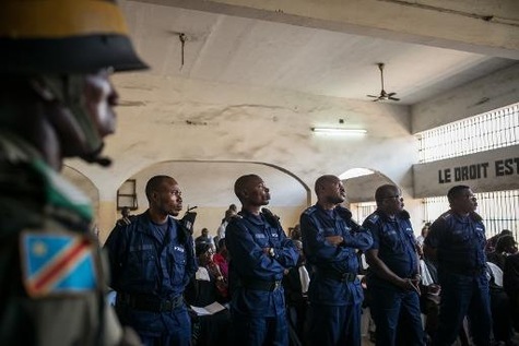 Cinq des huit accusés étaient présents à l'audience devant la Haute Cour militaire congolaise, réunie dans l'enceinte de la prison de Makala, dans la capitale de la République démocratique du Congo : le colonel Daniel Mukalay, ex-numéro 2 des services spéciaux de la police, condamné à mort en première instance pour avoir orchestré l'élimination de Chebeya, un lieutenant de police condamné à la réclusion criminelle à perpétuité pour complicité d'assassinat, et trois policiers relaxés lors du premier procès.