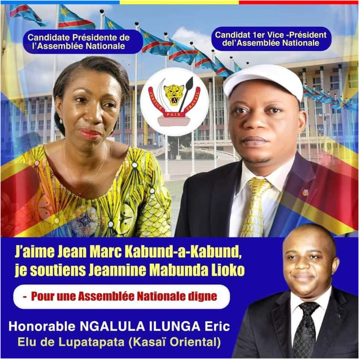 Interrogé sur la pertinence de la candidature de Jeannine Mabunda au perchoir et de Jean-Marc Kabund au poste de 1er vice-Président du Bureau définitif de la Chambre basse, Eric Ngalula Ilunga y va de ses certitudes. . « Mabunda-Kabund est un ticket gagnant. Car c’est une candidature FCC-CACH. En tant que député national élu sur la liste du parti politique UDPS/Tshisekedi dans la Circonscription électorale de Lupatapata au Kasaï Oriental, je considère que ce ticket est celui de la raison », déclare-t-il.