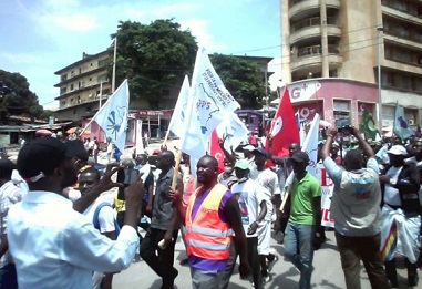 Des militants de l'UDPS/ Matadi, munis de drapeaux du pays et des insignes de l'armée, ont marché de la place le Copain dans la commune de Matadi, jusqu'au bureau du gouverneur de province, au centre-ville.