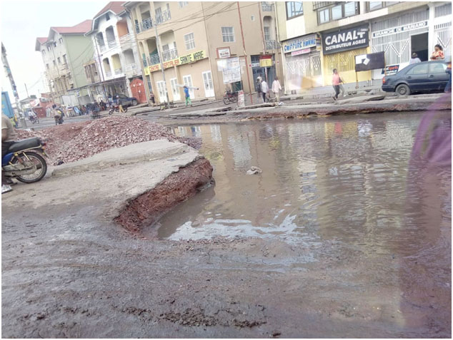 Artère très fréquentée, l’avenue Elengesa est délabrée. Cette route, qui fait jonction entre la commune de Makala et l’avenue Kasavubu, au niveau de Forces publiques (l’avenue transversale en provenance du Centre d’accueil kimbanguiste), est aujourd’hui parsemée d’ornières et de crevasses. Et quand il pleut, les trous béants se remplissent d’eaux de pluie qui transforme la route en ’’un mini lac’’.