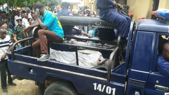 Quelques instants après, c’est une détonnation. Et on peut entendre « a bomi moto » (il a tué une personne en lingala). Le policier et ses compères partis, c’est quelques personnes agacées qui se sont mises à caillasser le véhicule, pendant ce temps le corps de la personne visiblement sans vie traînait au pied de la Jeep.