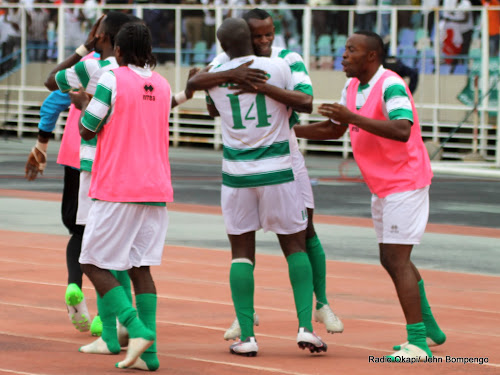 Les joueurs de Motema pembe célébrant leur victoire sur l'As V Club