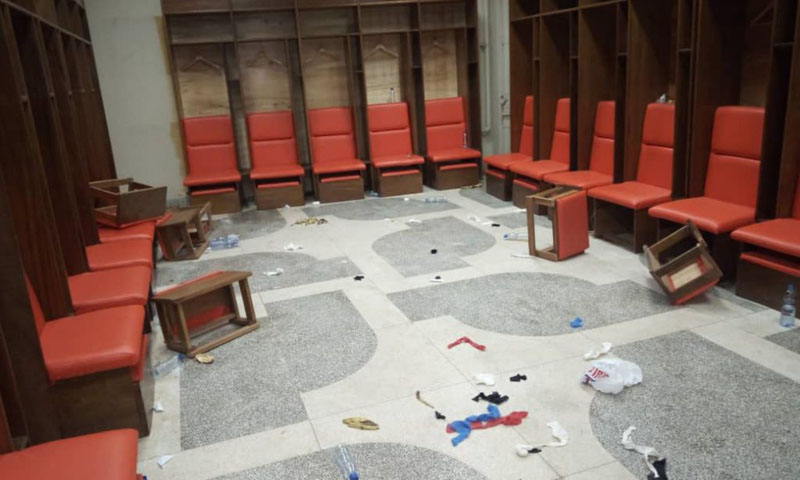 Revenant sur leur décision après quelques minutes, les sociétaires du club de Port Saïd entraînés par l'une de légende de la sélection égyptienne Hossam Hossan ont attendu la fin de la partie pour saccager et détruire.