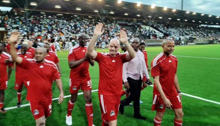 Rencontre sans enjeu ni adversité, juste pour le plaisir de bouger le corps et donner la joie aux supporters venus nombreux. Les Légendes de la FIFA l’ont finalement emporté (2-1) sur les anciens du TP Mazembe. Youri Djorkaeff et l’attaquant Gianni Infantino (bien servi par Samuel Eto’o), ont marqué les deux buts de l’équipe FIFA et Serge Lofo Bongeli a sauvé l’honneur des anciens Corbeaux.