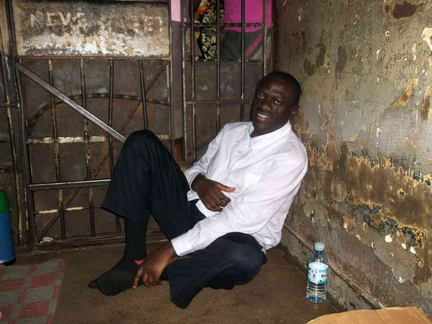 Kizza Besigye dans une de cellules de la police Ougandaise