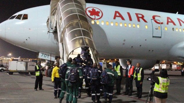 Les pompiers sud-africains à leur départ de Johannesburg. PHOTO : AIR CANADA