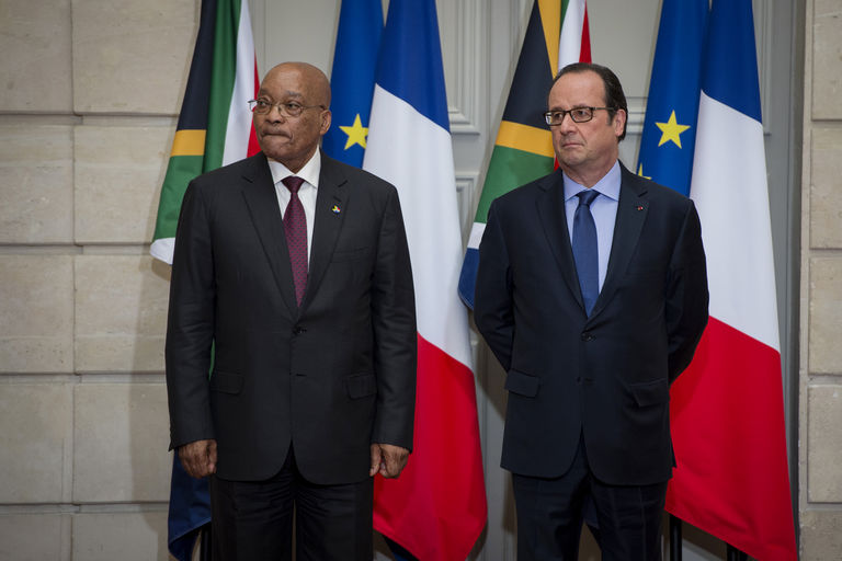 Cette visite d’Etat survient alors que Jacob Zuma est affaibli, menacé - mais ce n’est pas la première fois - , notamment en raison de démêlés judiciaires. Elle était « prévue de longue date », selon une source française, s’inscrivant dans le partenariat stratégique entre la France et l’Afrique du Sud, qui inclut un cycle de visites que se rendent, tous les trois ans en moyenne, les présidents des deux pays.