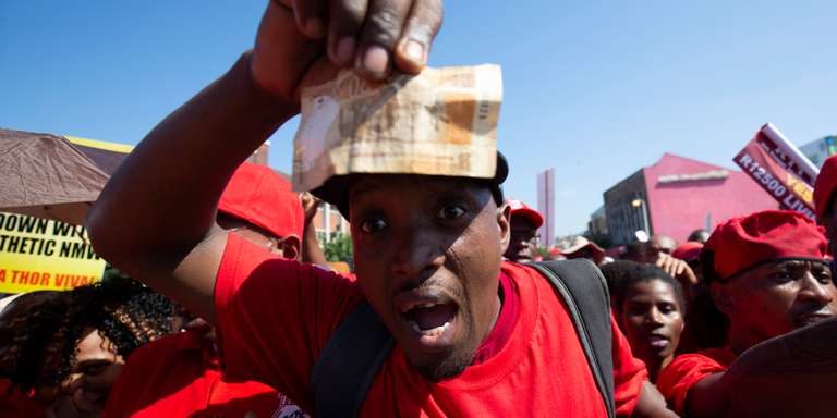 « On demande un salaire pour vivre, pas un salaire minimum »« Défendons le droit de faire grève », pouvait-on lire sur les pancartes brandies par les manifestants à Johannesburg. Avec l’introduction du salaire minimum, « je crains que nos salaires soient revus à la baisse », s’inquiète Idah Zondo, qui travaille dans l’industrie cosmétique et gagne 50 rands de l’heure.