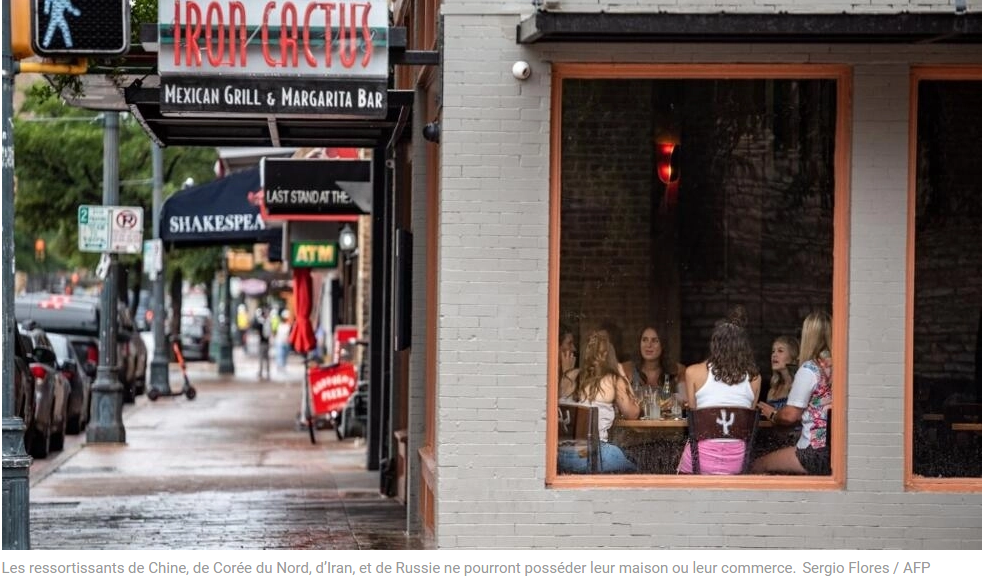 Avant de devenir citoyens américains, ce qui prend des années, les ressortissants de Chine, de Corée du Nord, d’Iran, et de Russie qui parfois ont fui la persécution ne pourront posséder leur maison ou leur commerce. Déposé en novembre par Lois Kolkhorst, sénatrice républicaine de Brenham, le projet de loi interdirait en effet aux citoyens, aux gouvernements et aux entités chinoises, iraniennes, nord-coréennes et russes d'acheter des terres au Texas, ce qui, selon elle et d'autres républicains, contribuerait à endiguer l'influence étrangère au Texas.