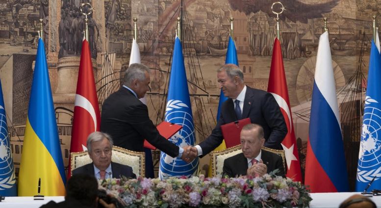 Le président turc Recep Tayyip Erdogan, dont le pays a joué les médiateurs, a reconnu qu'il n'avait « pas été facile » d'en arriver là, et espéré que la signature de cet accord, qui intervient près de cinq mois après le début du conflit, allait « renforcer l'espoir de mettre fin à cette guerre ». La Turquie s'est en outre dite prête à offrir son aide pour le déminage des ports ukrainiens.