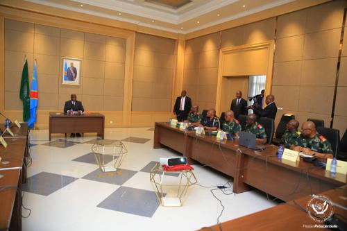 « Le chef de l’Etat prépare le Conseil supérieur de la Défense. Pour cela, il a réuni ses généraux et moi son ministre, pour que nous puissions réfléchir profondément sur la question de l’insécurité. Mais, nous allons réfléchir sur comment ramener la sécurité partout. Nous allons, autour du ministre de l’Intérieur, approfondir les thèses principales que le chef de l’Etat a mises à notre disposition », a affirmé le ministre de la Défense, Aimé Ngoy Mukena, dont les propos sont repris sur le compte Twitter de la Présidence de la République.