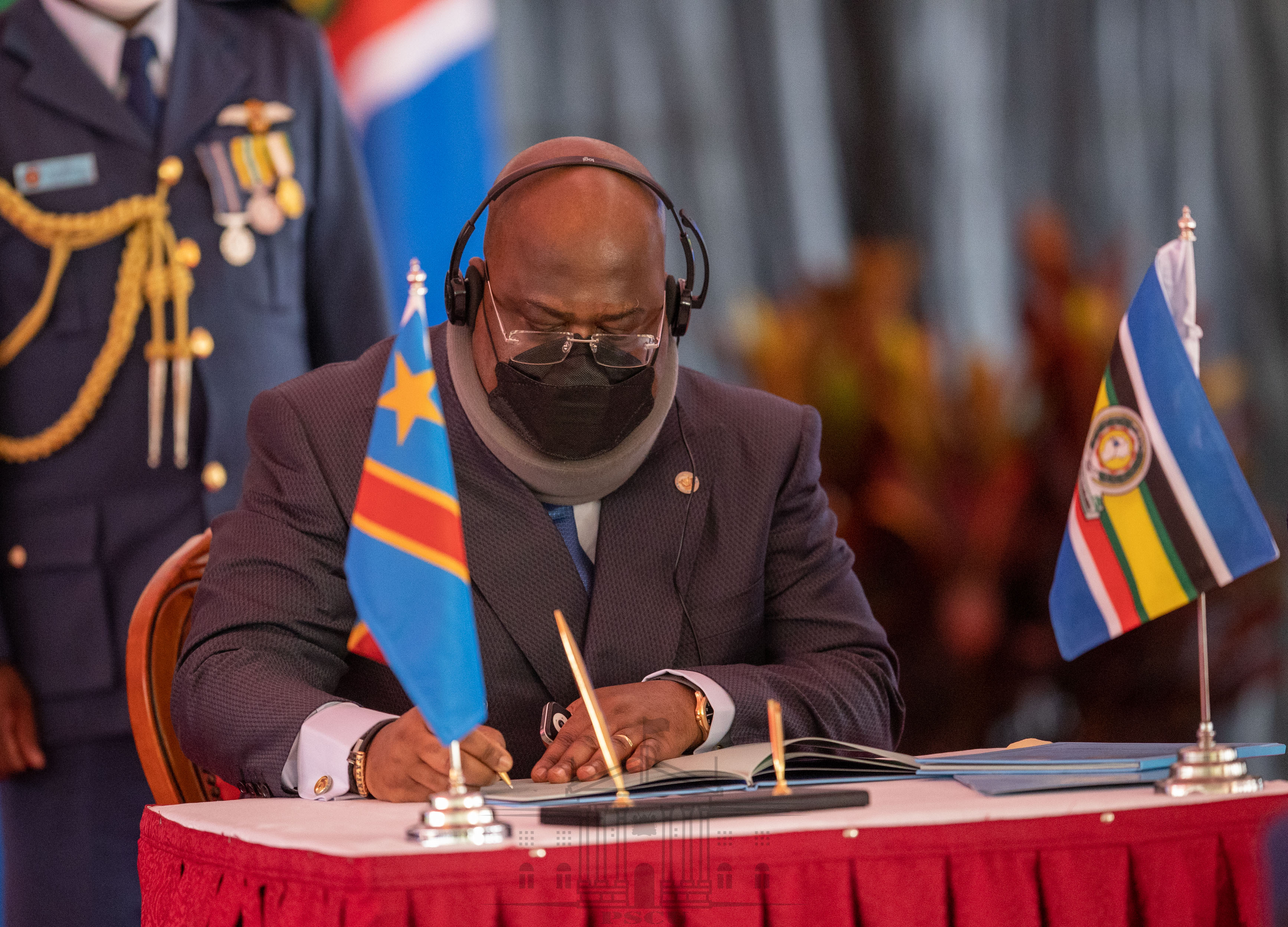 La RDC a officiellement signé vendredi 8 avril son entrée dans la communauté d’Afrique de l’Est. Le pays avait demandé à en faire partie en 2019. Ce matin à Nairobi, Félix Tshisekedi a ratifié l’adhésion de son pays à l’organisation régionale. Une cérémonie officielle qui a eu lieu en présence du chef d’État kényan, Uhuru Kenyatta, président actuel de l’organisation, ainsi que de ses homologues ougandais et rwandais, Yoweri Museveni et Paul Kagame. L’occasion pour les chefs d’État présents de rappeler les ambitions de la communauté : avoir un marché commun et une libre circulation des biens et des personnes, mais aussi encourager la sécurité dans la région.