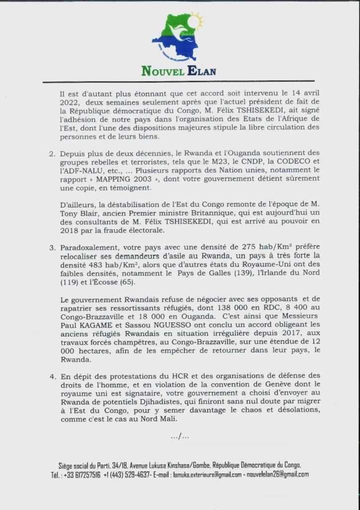 Ci-contre, l’intégralité de la déclaration de Nouvel Elan. Didier KEBONGO
