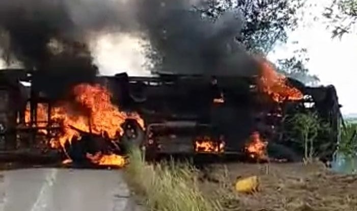 Trente-trois personnes sont mortes calcinées dans la collision d'un camion transportant du carburant et d'un bus sur l'une des principales routes de ravitaillement de Kinshasa, dans l'ouest de la République démocratique du Congo, a-t-on appris lundi de source policière. «33 personnes ont été calcinées par le grand feu provoqué par la collision entre un gros véhicule transportant du carburant et un bus bondé dans la nuit de samedi à dimanche à une dizaine de kilomètres du pont Kwango«, a déclaré à l'AFP le capitaine Antoine Pululu, chef de la police de circulation routière de la province du Kwango.